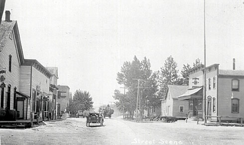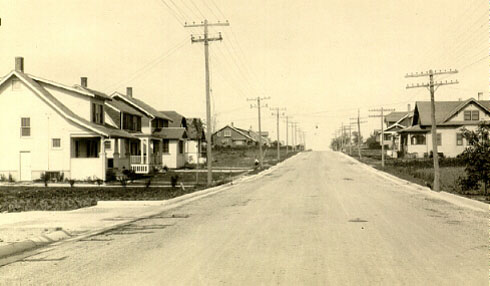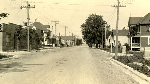 Main Street, looking west, during the 1930s. Beginning of the residential section. |